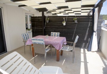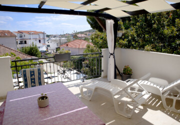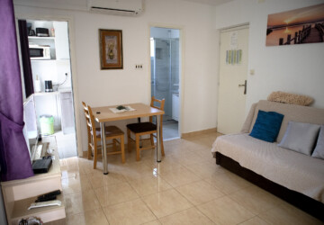 Apartment is in the center of Jezera. Its quiet and nice, for 5 persons. One bedroom with big sunny terace, bathroom and the kitchen with small terrace. In the bedroom is bed for two persons and bed for one person and in the living room is extra bed where can sleep two persons. Big garden, parking, barbecue, friendly hosts.